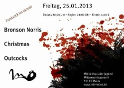 Wir freuen uns auf den Samstag - 9. Januar ! Werden da zum ersten Male im Jazzkeller, Hofheim auftreten ! Mit dabei sind noch ne obergeile Punk Gruppe aus Tschechien, die Bloody Mary und die saufetten Without Talent ! Kommen lohnt sich ! Also : komm vorher - und dann zu uns !