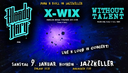 Als 3. Band an diesem Abend, - werden neben X-WIX und Freibier - dann nun auch noch die begnadeten Without Talent - mit uns rocken ! ( Gute Fahrt an ALLE - ist ja bissel glatt ! )