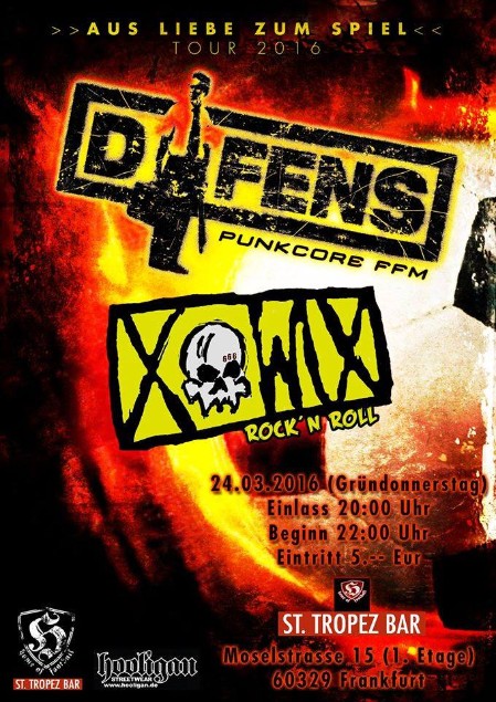 Am Gründonnerstag, den 24.03.. werden wir, wieder mal, mit den coolen Jungs von D-FENS zusammentreffen - um erneut, zusammen, einen Laden abzubraten ! Wo ? St.Tropez Bar - in Frankfurt/Main ! Wir freuen uns schon !